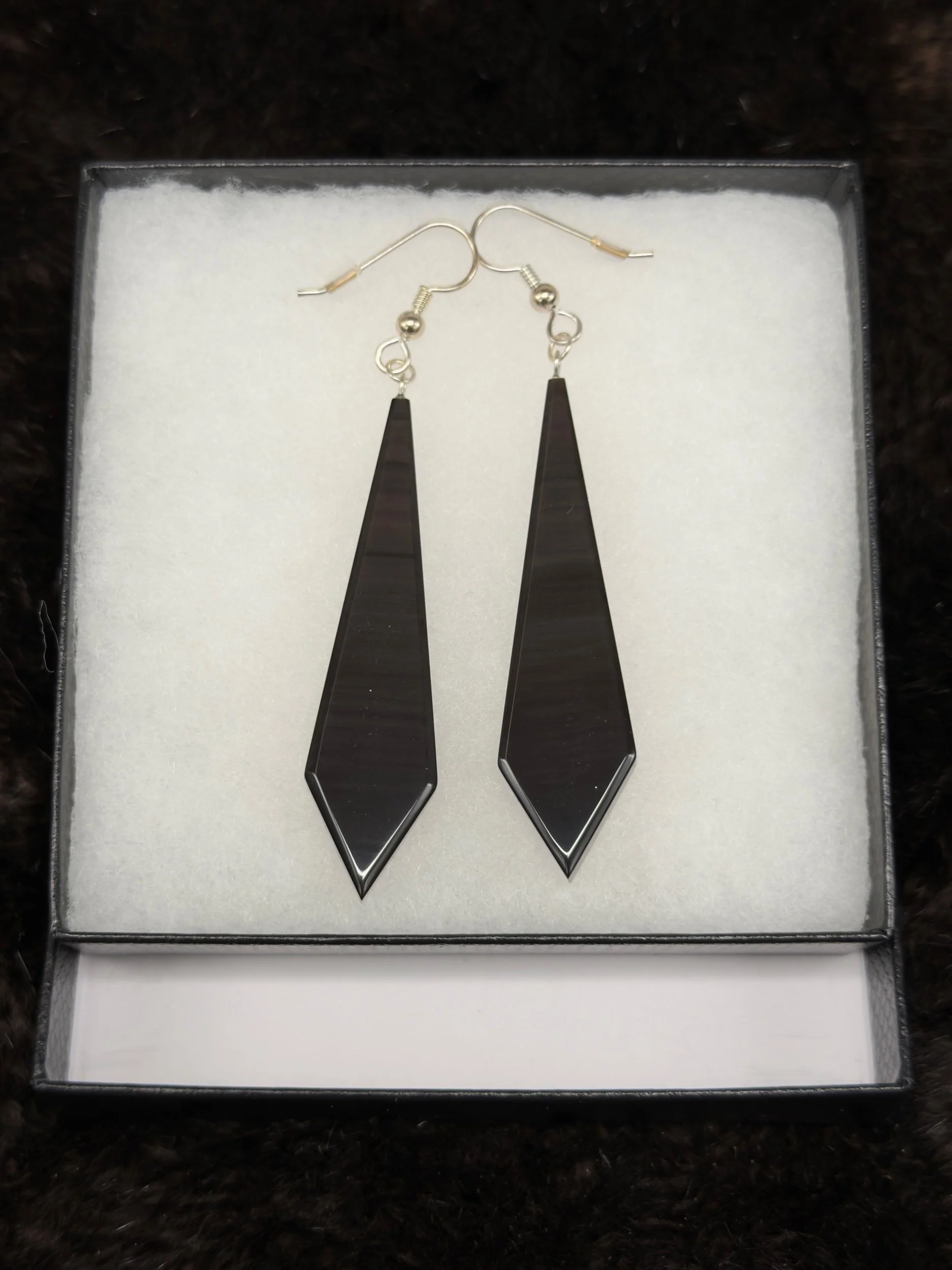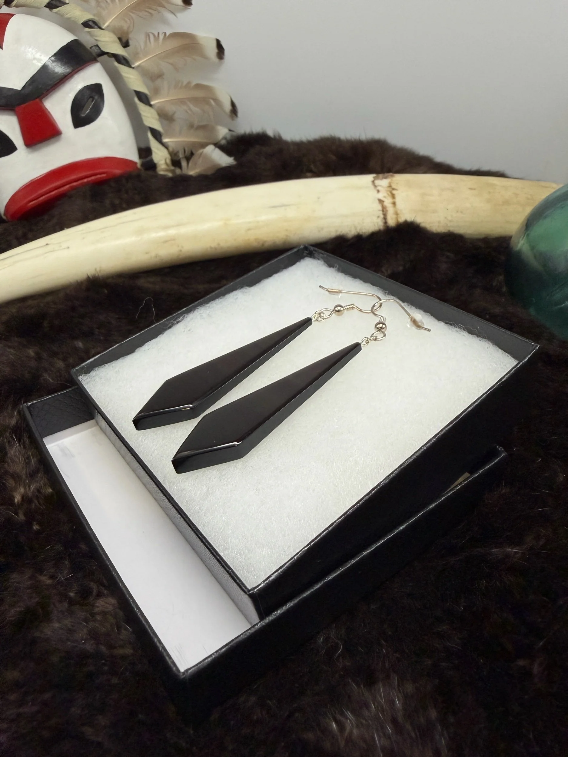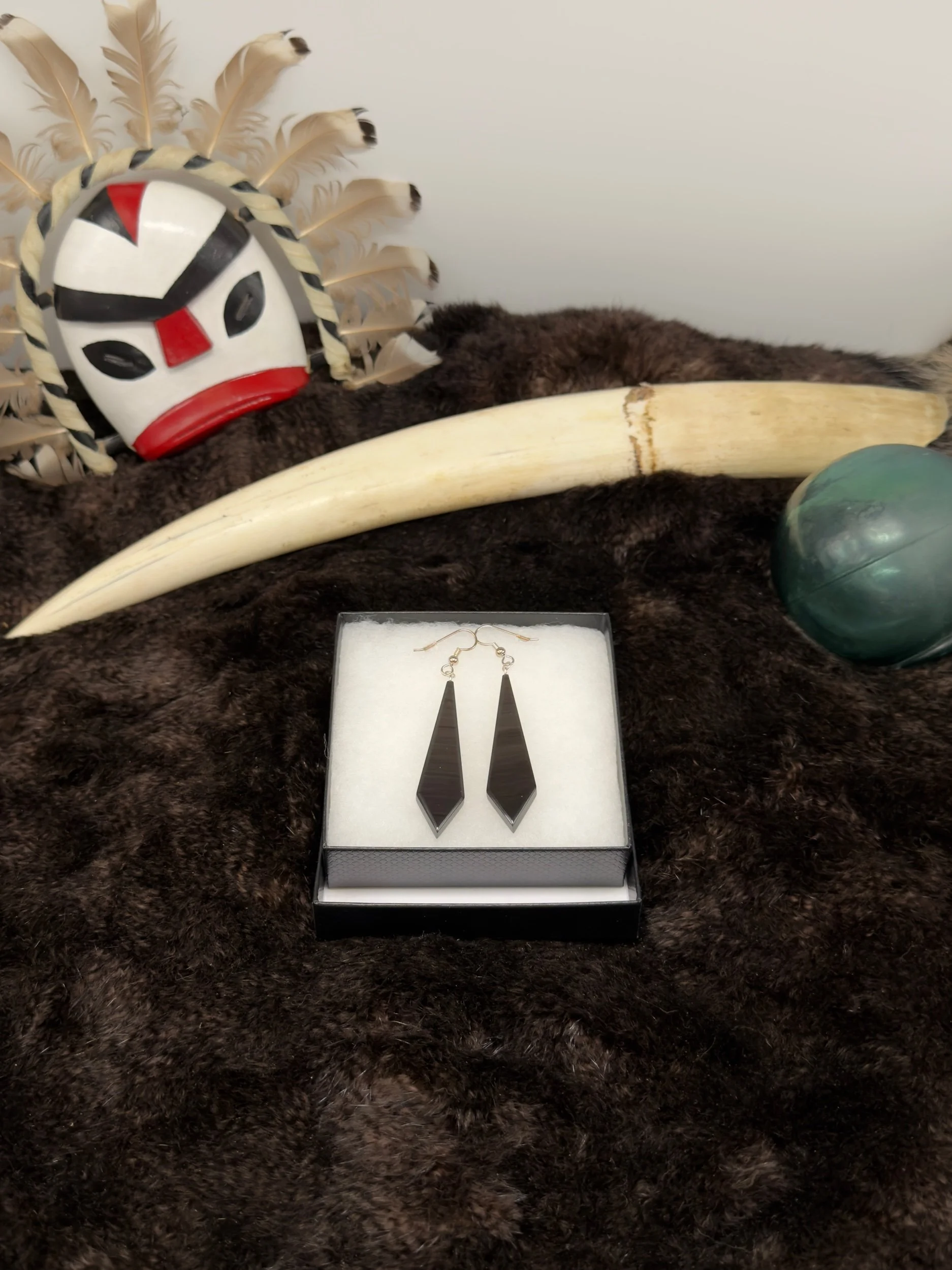 Handcrafted from genuine whale baleen and finished with Argentium silver findings, these earrings showcase the natural beauty of the material with a deep charcoal tone and subtle striping. Each pair is shaped, sanded, and polished to a smooth, high-gloss finish. Despite their size, they remain lightweight and comfortable for all-day wear.
